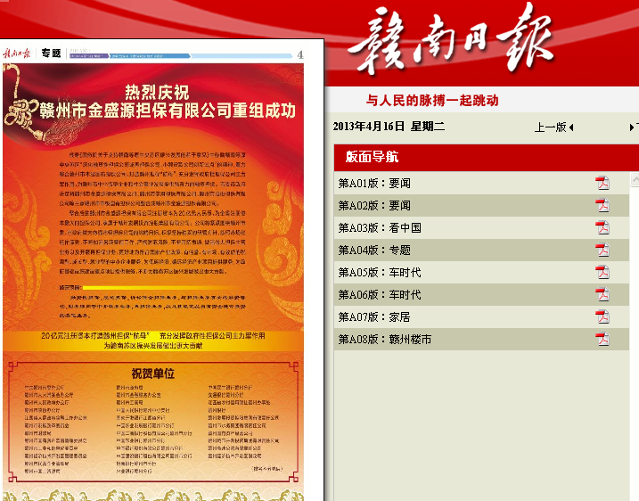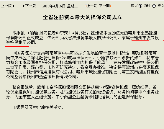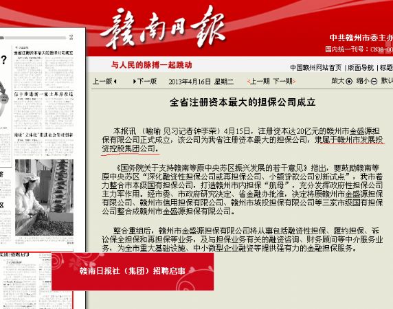 【赣南日报】全省注册资本最大的担保公司成立