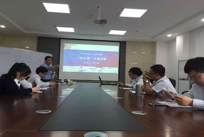 2016年4月22日下午,投资公司在公司十一楼会议室举行了主题为“‘营改增’专题讲解”的员工培训课程,公司总助刘尔滨为员工作了精彩解读,这标志着投资公司“2016年度员工培训计划”正式启动。
