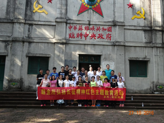 2016年10月27日,为落实上级党委“两学一做”学习教育工作要求,丰富学习教育形式,深入学习和贯彻落实习总书记在纪念红军长征胜利80周年的重要讲话精神,赣金所组织全体员工前往瑞金、于都,开展了一次党支部专题学习和全体员工培训相结合的“传承爱国主义、弘扬长征精神”的红色主题教育活动。