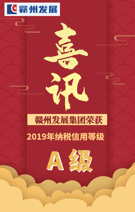 近日,在税务机关对企业进行纳税信用等级评级中,集团被国家税务总局赣州市税务局授予2019年纳税最高信用等级——A级。