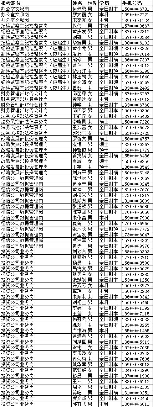 五、资格审核通过人员公示