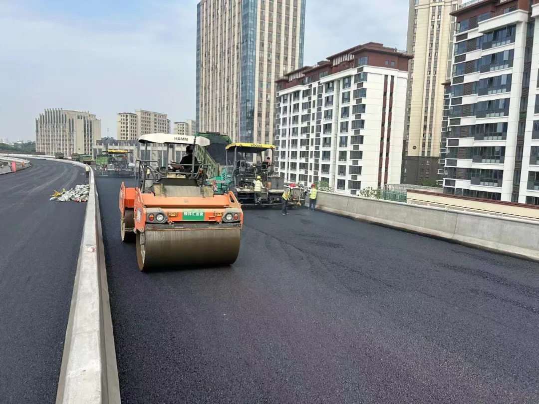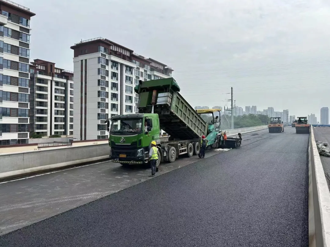 据了解,该项目自开工建设以来解决了制约主线高架的各类问题,涉及改扩建重大设计变更、项目征拆、高低压管线迁改等,目前主线高架同步进入沥青摊铺阶段。截止到目前,该项目累计完成产值63275.75万元,约占清单总工程量的47.46%(桥梁工程完成80%)。