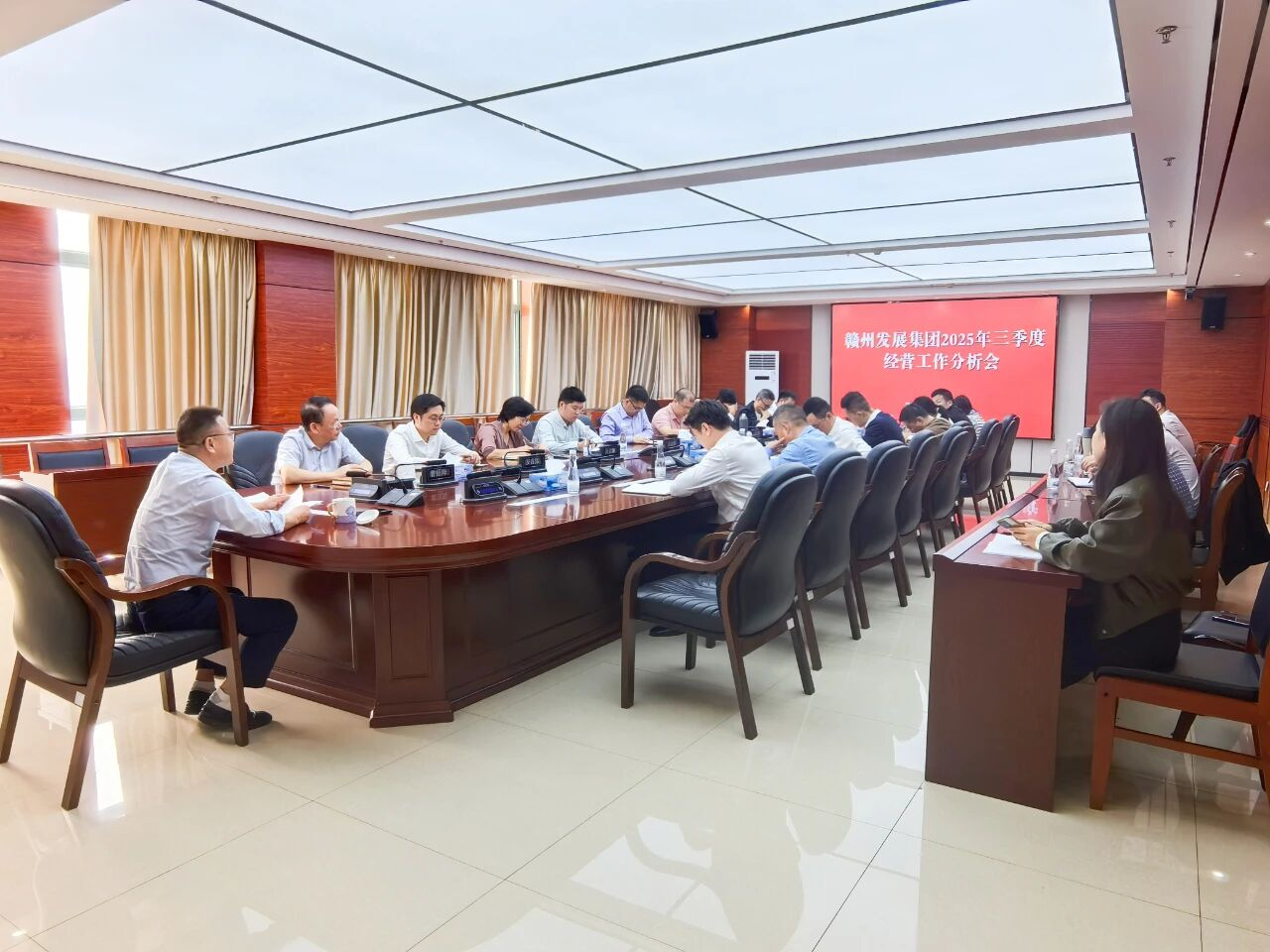 10月30日,球盟会集团召开三季度经营工作分析会,传达学习党的二十届四中全会精神,盘点集团前三季度工作进展情况,找准差距、压实责任,动员全体干部职工以决战决胜的姿态,全力冲刺四季度,确保全年各项目标任务高质量圆满收官。集团党委副书记、总经理梁敏辉主持会议并讲话,集团党委委员、市纪委监委驻集团纪检监察组组长曾绍海出席会议,各部门及子公司负责人、业务骨干参加会议。