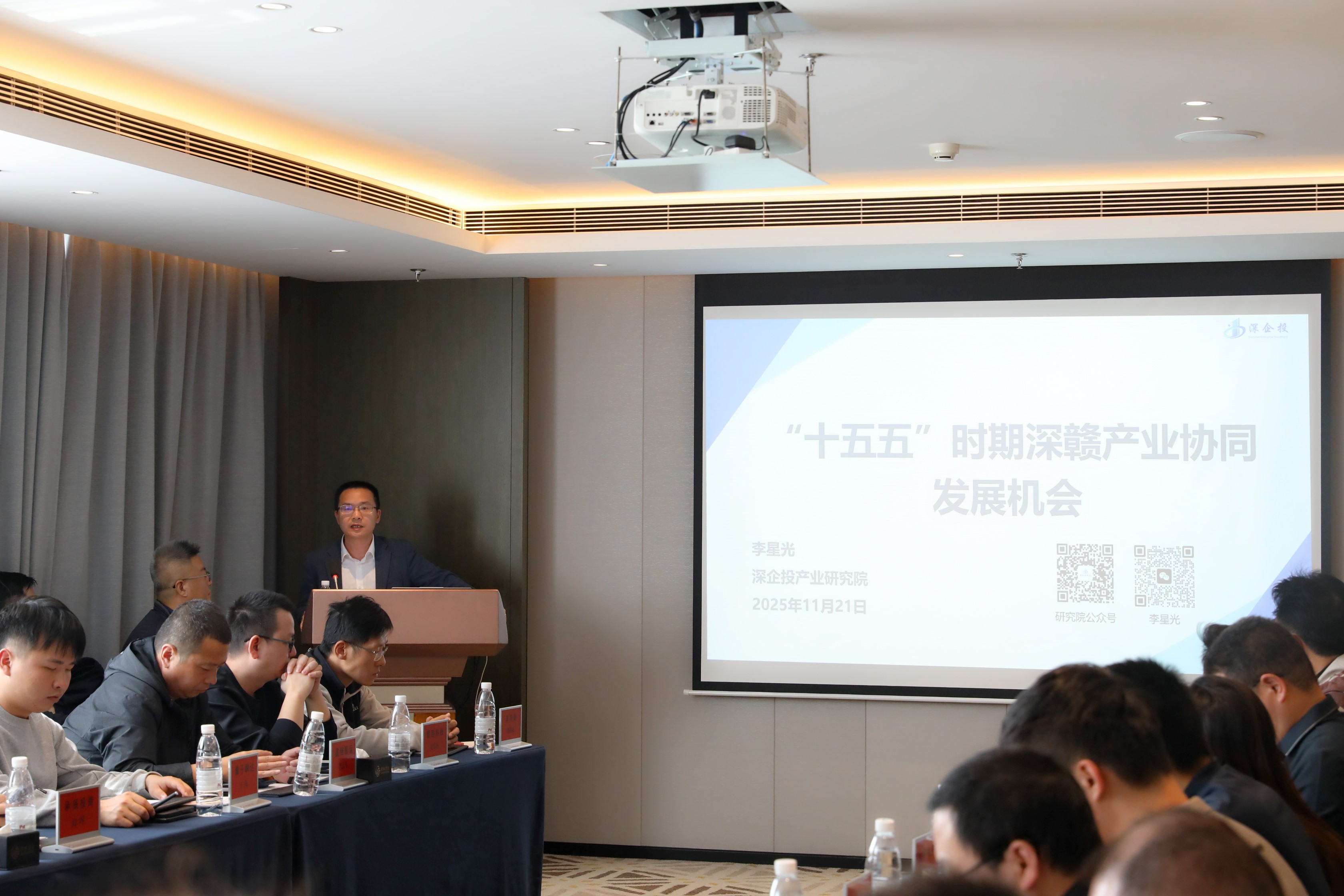 深企投产业研究院院长李星光作《“十五五”时期深赣产业协同发展机会》的分享,深入剖析未来五年深赣两地产业互补协同的巨大潜力和具体方向,为企业在战略布局上提供了极具价值的参考。国信证券的专业团队带来关于国有资本参与上市公司控制权交易的深度分析,并详细介绍了赣深产业基金的运作模式。